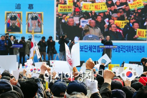 [아시아경제 백소아 인턴 기자] 연평도 포격 2주기를 하루 앞둔 22일 서울 중구 서울역 광장에서 열린 '연평도 포격도발 전사자 추모 및 영토수호 범국민대회'에서 참가자들이 구호를 외치고 있다.백소아 인턴 기자 sharp2046@<ⓒ세계를 보는 창 경제를 보는 눈, 아시아경제(www.asiae.co.kr) 무단전재 배포금지>