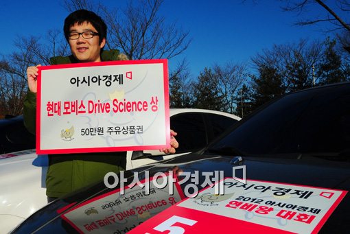 [아시아경제 백소아 인턴 기자] 24일 서하남IC 근처 한국도로공사 경기지역본부에서 열린 '2012 아시아경제 연비왕 대회'에서 '현대 모비스 Drive Science상'을 수상한 김병희씨가 자신의 자동차 앞에서 포즈를 취하고 있다.백소아 인턴 기자 sharp2046@<ⓒ세계를 보는 창 경제를 보는 눈, 아시아경제(www.asiae.co.kr) 무단전재 배포금지>