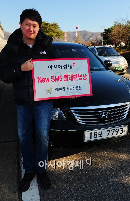 [아시아경제 백소아 인턴 기자] 24일 서하남IC 근처 한국도로공사 경기지역본부에서 열린 '2012 아시아경제 연비왕 대회'에서 '뉴SM5 플래티넘상'을 수상한 배용호씨가 밝은 표정으로 포즈를 취하고 있다.백소아 인턴 기자 sharp2046@<ⓒ세계를 보는 창 경제를 보는 눈, 아시아경제(www.asiae.co.kr) 무단전재 배포금지>