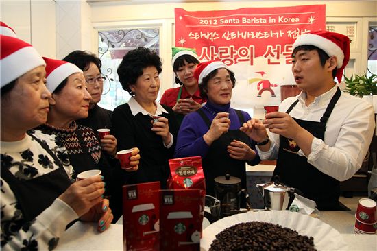 [아시아경제 박소연 기자]27일 서울 서대문종합사회복지관내 실버 카페에서 커피 스타벅스 커피대사와 커피매스터들이 재능기부 활동으로 어르신들을 초청해 원두 비교 시음, 커피 기구 추출, 라테아트 및 커피 칵테일 실습 등의 바리스타 교육을 펼쳤다.박소연 기자 muse@<ⓒ세계를 보는 창 경제를 보는 눈, 아시아경제(www.asiae.co.kr) 무단전재 배포금지>