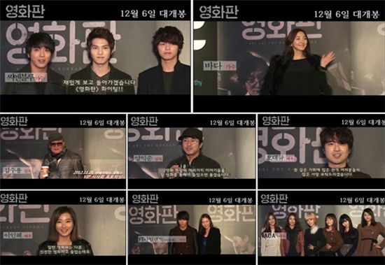 [아시아경제 김재범 기자]대한민국 톱 배우와 거장 감독들이 까발리는 영화계 뒷이야기 ‘영화판’(감독: 허철, 제작: ㈜아우라픽쳐스)이 지난 21일 저녁 8시 메가박스 코엑스에서 열린 VIP시사회 현장 모습을 28일 공개했다.당시 추운 날씨와 늦은 시간에도 불구하고 영화 관계자들로 가득 찬 현장에는 영화를 연출한 허철 감독과 인터뷰어로 영화에 참여한 정지영 감독, 배우 윤진서를 비롯해 김수용 강제규 양익준 감독 외에 오대규 이인혜 바다, AOA, FT아일랜드, 씨엔블루 등이 참석해 눈길을 끌었다. 연출을 맡은 허 감독과 배우로 출연한 정지영 감독 그리고 배우 윤진서의 감사 인사로 시작 된 VIP시사는 관객들의 박수갈채로 상영을 마무리 지었으며, 이후 포털 사이트에 영화가 실시간 검색어(다음,11/21)에 등재되며 많은 이들의 뜨거운 관심을 확인했다. 뿐만 아니라 “다큐멘터리라 지루할 것 같았는데 시간이 가는 줄 모르고 봤습니다(ID yuki****)”, “한국 영화를 사랑하는 사람이라면 꼭 봐야 한다(ID deki****)”, “다큐의 현실과 현실의 현실이 만나는 다큐(kwaw****)” 등의 반응이 온라인을 비롯해 SNS에 줄을 이었다.이를 통해 관객들의 관심과 기대도 커지고 있다. 더불어 당일 시사에 참석했던 가수 바다 역시 “한국영화역사를 영화인들의 시각에서 사실적으로 풀어낸 다트영화”라는 평을 남기며 영화를 강력 추천해 팬들의 이목을 집중시켰다.허철 감독이 메가폰을 잡고 정지영 감독과 배우 윤진서가 인터뷰어가 되어 영화인들의 목소리를 녹음, 그들의 이야기를 따라 한국영화계를 돌아보는 대한민국 영화 검진 다큐멘터리 ‘영화판’은 다음 달 6일 개봉한다.김재범 기자 cine517@<ⓒ아시아경제 & 스투닷컴(stoo.com)이 만드는 온오프라인 연예뉴스>