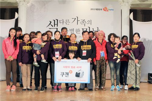 쿠첸이 27일 강원도 평창군 용평리조트에서 열린 베트남 다문화가정을 위한 '색(色)다른 가족의 특별한 만남'에 밥솥을 후원했다. 이날 행사에 참가한 가족들이 밥솥 전달식에서 기념촬영을 하고 있다.