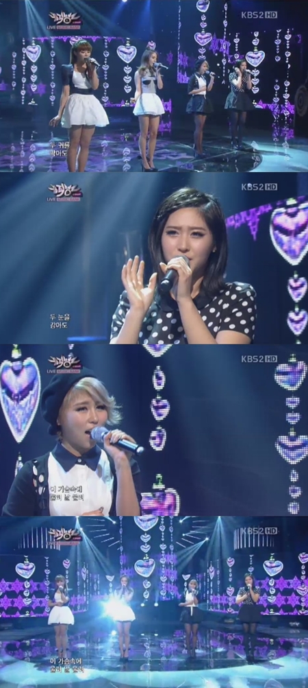 [아시아경제 조서희 기자] 그룹 E2RE가 팬들의 아쉬움을 자아냈다.E2RE 30일 오후 방송한 KBS2 '뮤직뱅크'에 출연해 데뷔곡 '깊은 밤 슬픈 노래' 무대를 선사했다.하지만 경직된 모습을 보여 시청자들을 안타깝게 만들었다. 멤버들은 정적인 무대 매너로 아쉬움을 남겼다. 다소 흔들리는 가창력도 흠이 됐다.이들의 데뷔 타이틀곡 '깊은밤 슬픈노래'는 히트곡 메이커 전해성 작곡가의 작품으로 미디움 템포의 멜로디와 아날로그적인 가사가 포인트다.한편 이날 '뮤직뱅크'에는 동방신기, 손담비, 노을, 김성규, B1A4, NS윤지, 보이프렌드, 씨클라운, 주니엘, 빅스타, 달샤벳, 투빅, 스피카, 오프로드, 타히티, 원더보이즈, 걸스데이 등이 출연했다.조서희 기자 aileen23@<ⓒ아시아경제 & 스투닷컴(stoo.com)이 만드는 온오프라인 연예뉴스>