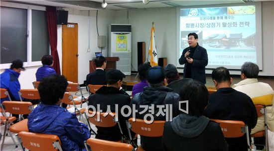 전남 함평군 함평읍경제살리기협의회(회장 박세영)는 지난달 26일부터 30일까지 5일간 함평읍사무소 회의실에서 관내 상가 대표 60여명을 대상으로 맞춤형 교육을 실시했다.경기침체 및 장기 불황에 따른 관내 상가의 활성화를 위해 전문 강사를 초빙하여 진행된 이번 교육은 가게를 비울 수 없는 상가의 특성을 고려해 야간 시간대인 오후 7시부터 9시까지 운영돼 큰 호응을 얻었다.교육에 참석한 이 모 씨는 "평소 장사에는 일가견이 있다고 생각했는데 침체되고 있는 상가가 다시 살아나기 위해서는 상인들의 실천을 통한 변화된 모습이 중요하다는 강의에 크게 공감했다 “며 "다시 이런 기회가 마련된다면 주변 상가 상인들이 참석할 수 있도록 적극 추천하겠다”고 말했다. 김귀채 함평읍장은 인사말에서 "함평읍 경제 살리기와 맞물려 열린 이번 교육으로 상인들의 변화와 경영에 대한 마인드가 한층 높아져 관내 상가가 더욱 활성화되는 계기가 될 것으로 기대된다 “고 말했다. 노해섭 기자 nogary@<ⓒ세계를 보는 창 경제를 보는 눈, 아시아경제(www.asiae.co.kr) 무단전재 배포금지>