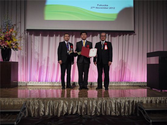 ‘아시아인들에게 행복한 생활환경을’달성한 도시에 수여하는 아시아 도시경관상. 성북구는 지역특색과 잠재력을 살린‘성북동 역사문화지구 조성’사업으로 수상의 영광을 안았다. 후쿠오카에서 진행된 시상식에서 김영배 성북구청장(가운데)<br />