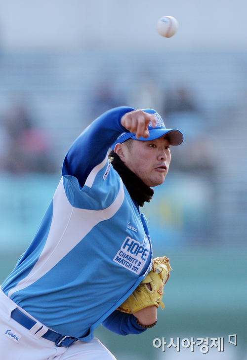 [수원=아시아경제 정재훈 기자] 2일 수원야구장에서 열린 양준혁 재단 주최 '2012 희망더하기 자선야구대회'에서 통일팀 김진우가 역투하고 있다.정재훈 기자 roze@<ⓒ세계를 보는 창 경제를 보는 눈, 아시아경제(www.asiae.co.kr) 무단전재 배포금지>