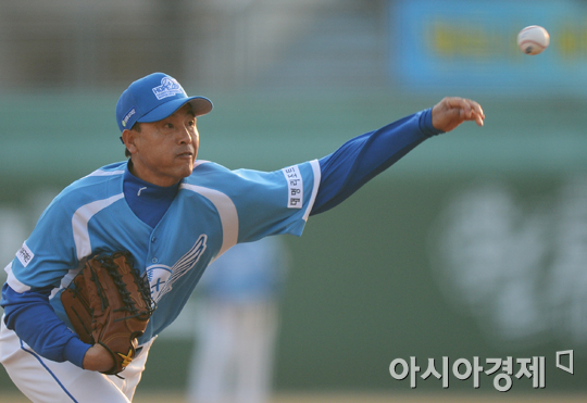 [수원=아시아경제 정재훈 기자] 2일 수원야구장에서 열린 양준혁 재단 주최 '2012 희망더하기 자선야구대회'에서 송진우가 역투하고 있다.정재훈 기자 roze@<ⓒ세계를 보는 창 경제를 보는 눈, 아시아경제(www.asiae.co.kr) 무단전재 배포금지>