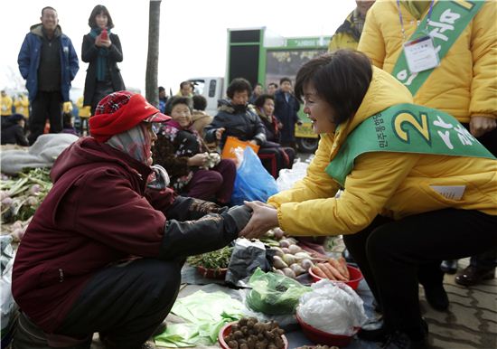 [아시아경제 김종일 기자] '유쾌한 정숙씨'가 눈시울을 붉혔다. 특유의 활달함과 친밀감으로 전국을 누비며 '내조의 여왕' 역할을 톡톡히 하고 있는 문재인 민주통합당 대선후보의 부인 김정숙씨가 2일 부친의 고향인 인천 강화도를 찾아 유세를 하던 중 애끓는 부정(父情)에 눈물을 보였다. 김 여사는 이날 오전 강화읍 갑곳리에 위치한 강화풍물시장을 찾아 "강화도댁 문재인 안사람이 인사드리러 왔다"며 "강화도의 사위인 문재인이 대통령 후보가 됐다. 인천시민들이 사람이 먼저인 세상을 꿈꾸는 문 후보를 도와 달라"고 지지를 호소했다.그는 강화풍물시장 구석구석 돌며 "고향에 오니까 푸근한 정이 느껴진다. 이곳은 어릴 적 아버지를 따라 자주 왔었다"며 시장을 방문한 시민들에게 먼저 인사를 건네며 적극적인 모습을 보였다. '유쾌한 정숙씨'라는 별명에 걸맞게 시장 상인들과 눈을 맞추며 적극적으로 유세전을 펼치는 모습이었다.시장 상인들과 반갑게 인사를 나누며 대화를 이어가던 김 여사는 부친의 이야기가 나오자 끝내 눈물을 보였다. 그는 "친정아버지께서 고혈압으로 병원에서 돌아가셨을 때 마지막 운구행렬을 했던 장소가 이곳이고, 마지막으로 모신 곳이 강화도"라며 부친에 대한 생각에 눈시울을 붉혔다.