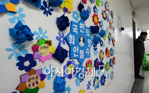 [아시아경제 최우창 기자]3일 오후 안철수 전 무소속 대선 후보 사무실 벽에 안철수 전후보 지지 편지가 그대로 붙어 있다. 안 전 후보는 이날 오후 캠프 해단식을 갖고 문재인 민주당 후보에 대한 지지 여부를 밝힐 것으로 예상된다. 최우창 기자 smicer@<ⓒ세계를 보는 창 경제를 보는 눈, 아시아경제(www.asiae.co.kr) 무단전재 배포금지>