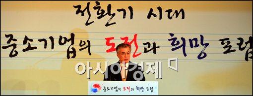 [아시아경제 최우창 기자]문재인 민주통합당 대선후보가 3일 서울 여의도 중소기업 중앙회에서 '중소기업 도전과 희망 포럼'을 갖고 중소기업과 자영업을 위한 10대 대책을 발표하고 있다.최우창 기자 smicer@<ⓒ세계를 보는 창 경제를 보는 눈, 아시아경제(www.asiae.co.kr) 무단전재 배포금지>