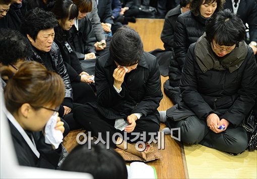 [국회사진기자단] 박근혜 새누리당 후보가 4일 여의도 성모병원에서 교통사고로 사망한 이춘상 보좌관의 발인에 참석 눈물을 흘리고 있다.윤동주 기자 doso7@<ⓒ세계를 보는 창 경제를 보는 눈, 아시아경제(www.asiae.co.kr) 무단전재 배포금지>