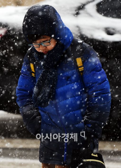[아시아경제 최우창 기자] 때이른 강추위 속에 많은 눈이 내리는 5일 서울 서초구 한 아파트 단지에서 한 아이가 눈을 맞으며 걸어가고 있다. 최우창 기자 smicer@<ⓒ세계를 보는 창 경제를 보는 눈, 아시아경제(www.asiae.co.kr) 무단전재 배포금지>