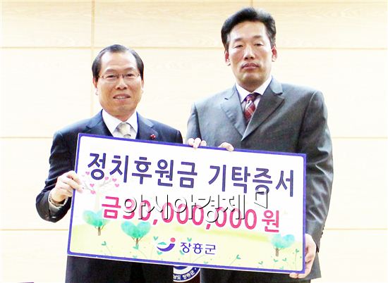전남 장흥군선거관리위원회는 지난 6일 장흥군청 회의실에서 우리나라 정치발전의 염원을 담은 기탁금을 장흥군청 직원들이 모두 모인 자리에서 이명흠 장흥군수로부터 전달받았다고 밝혔다.이날 기탁금 전달식에서 이명흠 장흥군수는 “소액다수의 정치후원금 기부문화 활성화로 깨끗하고 투명한 정치문화 조성은 물론, 민주정치를 발전시키는 초석이 되길 바라는 취지에서 자발적으로 직원들과 동참하게 됐다”고 말했다.장흥군선관위에 따르면 이번 정치자금 모금활동에 참여한 장흥군청 직원은 330명으로 금액은 3,000만원이며, 그 밖에 장흥우체국 530만원, 농·축·수·산림조합 600만원, 장흥군선관위 선거부정감시단 500만 원 등 지난 6일 현재 총 6,000만원이 모금됐다고 밝혔다.기탁금은 자신이 지지하는 정치인의 후원회에 직접 기부하는 후원금과 달리 정당가입이나 정치활동이 금지된 공무원·사립학교 교원을 포함한 국민 개개인이 각급 선관위에 기부하는 정치자금을 말하며, 기탁금을 기부하고자 하는 사람은 정치후원금센터(<www.give.go.kr)에> 접속하거나 선거관리위원회 방문 또는 계좌이체(농협619-01-002510, 장흥군선관위) 등을 통해서 기부를 할 수 있다.또한, 기탁금을 기부한 경우 연말정산시 10만원까지는 세액공제를, 10만원을 초과하는 금액에 대하여는 소득공제를 받을 수 있으며 모금된 기탁금은 매년 각 정당에 지급하는 국고보조금 배분비율에 따라 주요 정당에 지급되게 된다.장흥군선관위 마기섭 사무국장은 "국민들이 성원해 주신 정치자금은 정치인들에게 따뜻한 격려와 채찍이 되어 우리나라 정치발전에 큰 밑거름이 될 것"이라며 "우리의 정치를 희망의 정치로 이끌어 내는 마중물로서의 역할을 다 할 것"이라고 밝혔다.노해섭 기자 nogary@<ⓒ세계를 보는 창 경제를 보는 눈, 아시아경제(www.asiae.co.kr) 무단전재 배포금지>