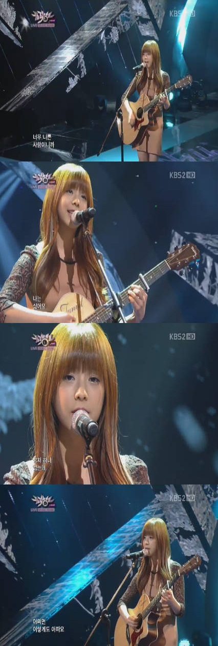 [아시아경제 장영준 기자]가수 주니엘이 흔들림 없는 가창력과 깜찍한 외모로 시선을 사로잡았다.주니엘은 7일 오후 방송된 KBS2 '뮤직뱅크'에서 신곡 '나쁜사람'을 열창했다.이날 주니엘은 트레이드마크인 기타를 메고 무대에 올라 특유의 청순미를 과시해 눈길을 끌었다. 흔들림 없는 가창력은 물론, '제 2의 아이유'라는 수식어에 어울리는 깜찍한 외모로 객석의 뜨거운 환호를 이끌어냈다.신곡 '나쁜사람'은 주니엘의 애절한 목소리가 돋보이는 팝 곡. 이별에 상처받아 아파하는 여자의 마음을 담고 있다. 깊은 독백처럼 연주되는 어쿠스틱 기타, 피아노 연주가 애절한 멜로디와 조화를 잘 이뤄 감성을 자극한다.한편 이날 방송에서는 넬, 신혜성, 동방신기, 손담비, B1A4, 양요섭, 에일리, 보이프렌드, 주니엘, 백퍼센트, 달샤벳, 걸스데이, 익사이트, 스피카, 시크릿, 김종국, 빅스타, 디유닛, 더 씨야, 가비엔제이, 용감한 녀석들, 2BiC, 하이니 등이 출연했다.장영준 기자 star1@<ⓒ아시아경제 & 스투닷컴(stoo.com)이 만드는 온오프라인 연예뉴스>