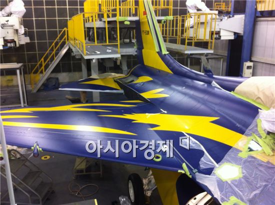 [아시아경제 양낙규 기자]인도네시아 공군의 특수비행팀이 사용할 국산 T-50 고등훈련기의 겉모습이 공개됐다. 언론에 첫 공개다. 한국항공우주산업(KAI)은 지난해 인도네시아에 T-50 훈련기 16대를 수출하는 계약을 체결했으며 내년 말쯤 완제품을 인도할 계획이다. 인도네시아는 T-50을 공군 조종사 훈련과 특수비행용으로 활용한다는 계획이다. 이때문에 인도네시아는 KAI에 훈련용과 특수비행용의 2가지 도색을 요구했다. 6대 가운데 절반은 한국 공군의 '블랙 이글스'와 같은 특수비행용 항공기로 이용한다는 것이다. 인도네시아는 정부가 주도해 통합항공훈련센터를 구축하고 이곳에서 공군을 비롯한 다른 항공기 조종사의 훈련을 실시할 계획이다. T-50이 수출되면 이곳에서 육해공군을 비롯한 경찰, 산림청 등의 항공기 조종사 교육이 이뤄질 것으로 보인다. 도색된 인도네시아 특수비행팀의 T-50 디자인은 우리 공군의 블랙이글스팀과 비슷하다. 하지만 우리 블랙이글스팀은 검은색과 노란색으로 구성되어 있는 반면 인도네시아 특수비행팀의 T-50은 파란색과 노란색을 주를 이루고 있다. 우리 공군의 블랙이글스의 디자인은 지난 2009년 공군이 디자인을 공모한후 공군 교육사령부 황정광 일병이 제출한 작품을 최종확정했다. 황일병이 응모한 독수리를 형상화하고 역동성을 강조한 디자인은 검은색을 기본으로 삼고 흰색과 노란색으로 날렵한 곡선을 표현했다.한편, 블랙이글스의 과거 기종인 A37 항공기의 노후화가 심해 2007년 10월 고별비행 이후 블랙이글스의 공식 활동을 중단시킨 적도 있다. 현재 블랙이글스는 국산 초음속훈련기인 T50을 선정한 후 훈련 비행을 하고 있다.양낙규 기자 if@<ⓒ세계를 보는 창 경제를 보는 눈, 아시아경제(www.asiae.co.kr) 무단전재 배포금지>