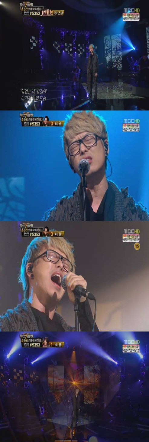 [아시아경제 장영준 기자]밴드 국카스텐이 모두의 우려를 씻어내고 완벽한 무대를 선사했다. 9일 방송된 MBC '일밤-나는 가수다2'에서는 세 번째 탈락자를 가리는 '슈퍼디셈버 2012 가왕전' 5강전이 펼쳐졌다.이날 다섯 번째 순서로 무대에 오른 국카스텐은 故 김현식의 '넋두리'를 선곡했다. '넋두리'는 앞서 박완규가 선곡했다 포기한 노래로, 함께 출연한 가수들 역시 걱정 어린 시선을 보내기도 했다.하지만 국카스텐의 무대는 우려와 달리, 특유의 가창력과 어우러지며 관객들의 뜨거운 호응을 이끌어냈다. 특히 노래 중간 나지막한 목소리로 내뱉은 내레이션 부분은 노래의 슬픔을 극대화하는 효과를 불러일으키며 무대에 대한 관객들의 집중도를 높이는데 기여했다.국카스텐의 하현우는 "노래를 부르다 겁이 난 적은 처음이다. 자칫 노래를 망칠 것 같은 느낌이 들었다. 마이크 스탠드를 잡고 버텼다. 나중에는 마이크를 잡은 손이 흔들렸다. 섣불리 부른다고 해서 큰일 날 뻔 했다"고 소감을 전했다.한편, 이날 방송에는 더원 소향 국카스텐 이은미 박완규가 출연해 열띤 경연을 벌였다. 가수 이정과 윤하는 특별공연을 위해 깜짝 출연해 눈길을 끌었다.장영준 기자 star1@<ⓒ아시아경제 & 스투닷컴(stoo.com)이 만드는 온오프라인 연예뉴스>