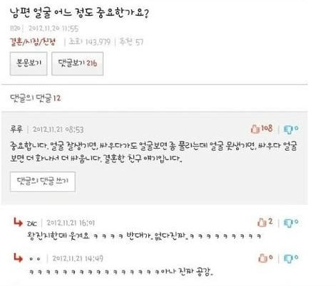 남편 얼굴의 중요성/출처:온라인 커뮤니티