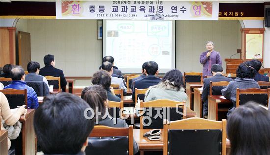 전남 함평교육청(교육장 김승호)은 지난 12일부터 13일까지 이틀간 2009개정 교육과정에 따른 교과교육과정 연수를 실시했다. 관내 중학교 교사 78명을 대상으로 이루어진 이번 연수는 성취평가제의 이해와 정착에 대하여 김치민 수석교사로부터 강의가 있었다.이어서 각 교과별 교과교육과정 개정 중점에 대하여 과목별 전달연수 및 협의회 시간을 가졌다. 연수에 참석한 선생님들은 과목별 개정 중점에 대해 이해하고, 교과별 협의회를 통해 2013년도 교과운영에 대한 정보를 공유하는 의미 있는 시간을 가졌다.노해섭 기자 nogary@<ⓒ세계를 보는 창 경제를 보는 눈, 아시아경제(www.asiae.co.kr) 무단전재 배포금지>
