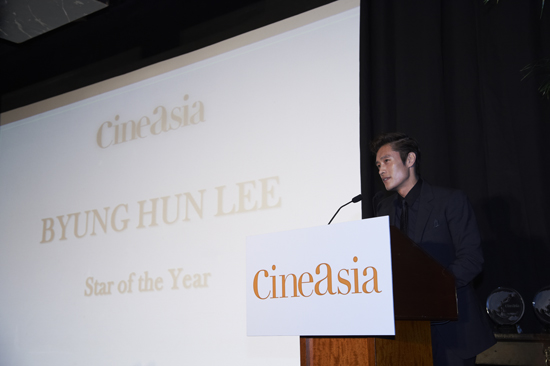 [홍콩=아시아경제 김재범 기자]배우 이병헌이 홍콩 그랜드 하얏트 호텔에서 열린 ‘2012 시네아시아(CineAsia) 어워즈’에서 올해의 스타상(Star of the Year)을 수상했다. 13일(현지시간) 오후 12시 현지에서 열린 ‘시네아시아 어워즈 런천’ 행사에 참석한 그는 “상을 준 시네아시아 측에 감사한다”면서 “나는 항상 새로운 도전과 새로운 시도를 즐긴다”며 수상에 대한 소감을 전했다.무대에 선 이병헌은 “도전과 새로운 시도가 계속되다보면 때로는 겁도 나고 두려울 때도 있다. 그러다 보면 바다 한가운데서 방향을 잃고 수영을 하는 느낌이다”고 말했다. 하지만 그는 “이번 수상을 계기로 나아갈 방향에 대한 지표를 갖게 됐다. 할리우드 영화에 참여할 수 있는 기회를 준 관계자들에게 감사하다”며 수상 소감을 마쳤다.이병헌이 출연한 할리우드 영화 ‘지.아이.조2’ 3D를 연출한 존 추 감독은 수상자인 이병헌을 소개하기 위해 무대에 올랐다. 그는 “이병헌으로 인해 아시아 배우들의 위상과 할리우드에서의 활약이 크게 기대하고 있다”면서 “그로 인해 할리우드 제작 시스템마저 바뀌고 있다”고 이병헌의 위상을 전했다.현장에 참석하지 못한 ‘지.아이.조2’ 프로듀서 로렌도 디 보나벤추라도 영상을 통해 이병헌의 수상을 축하했다.사진 =CJ E&M