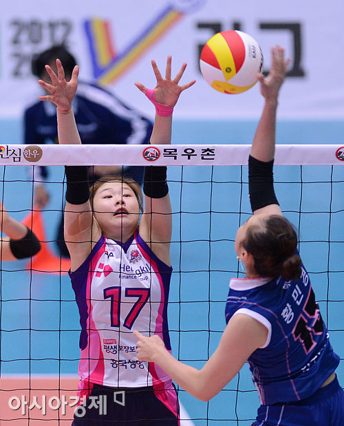 [성남=아시아경제 정재훈 기자] 20일 오후 성남실내체육관에서 열린 'NH농협 2012~2013 V리그' 여자부 도로공사와 흥국생명의 경기에서 황민경이 스파이크를 때리고 있다.정재훈 기자 roze@<ⓒ세계를 보는 창 경제를 보는 눈, 아시아경제(www.asiae.co.kr) 무단전재 배포금지>정재훈 사진기자 roze@<ⓒ아시아 대표 석간 '아시아경제' (www.newsva.co.kr) 무단전재 배포금지>