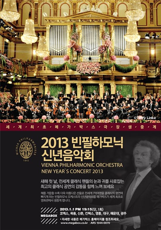 [아시아경제 김재범 기자]멀티플렉스 극장체인 메가박스(대표 여환주)가 ‘2013 빈필하모닉 신년음악회’를 전 세계 최초로 극장에서 생중계 한다. 빈필하모닉 신년음악회는 1941년부터 오스트리아의 대표적인 관현악단인 빈필하모닉 오케스트라가 매년 1월 1일 빈 음악협회 대강당에서 개최하는 세계적인 음악회로, 올해 73번째를 맞이했다. 세계 70여 개 국에서 TV나 라디오로만 생중계되던 이번 공연을 영화관에서 라이브로 상영하는 것은 빈필 신년음악회 역사상 최초다. 빈필 신년음악회는 메가박스 코엑스점, 목동점, 신촌점, 킨텍스점, 영통점, 대구점, 광주점, 해운대점 등 전국 총 8개 지점에서 1월 1일 오후 7시 15분부터 9시 45분까지(중간 20분 인터미션포함) 150분 동안 생중계된다. 오스트리아 현지에서는 오전 11시 15분부터 시작되는 공연을 위성 생중계(시차 8시간)하는 것으로, 비엔나까지 가지 않아도 실시간 감상이 가능하게 됐다. 뉴욕 필, 베를린 필과 함께 세계 3대 교향악단으로 불리는 빈필하모닉의 신년음악회의 지휘는 매년 가장 명망 있고 뛰어난 지휘자에게 맡기는 것이 관례로 지금까지 카라얀, 마리스 얀손스, 다니엘 바렌보임 등의 당대 세계 최고의 지휘자들이 거쳐갔다.내년 지휘자는 지난해 이어 두 번째로 지휘봉을 잡게 된 오스트리아 출신 ‘프란츠 뵐저 뫼스트(Franz Welser-Most)’다. 빈 국립오페라 극장의 음악총감독이자, 세계 최상급 관현악단으로 평가받는 클리블랜드 오케스트라의 음악감독이다. 1998년 빈필하모닉에서 데뷔했고, 2010년에는 쉔부르 궁전에서 여름 밤 콘서트를 지휘하기도 했다.이번 빈 신년음악회는 특히 바그너와 베르디의 탄생 200주년을 축하하며 열리게 된다. 바그너와 베르디의 작품들뿐만 아니라 빈 신년음악회의 전통으로 매년 한 해도 거르지 않고 새해의 시작을 알리는 곡으로 이어져 온 ‘아름답고 푸른 도나우 강’과 함께 단원들의 새해인사, ‘라데츠키 행진곡’ 등으로 콘서트를 마무리하며 신년을 맞이할 예정이다.이번 생중계 소식을 접한 요세프 뮐르너(Josef MULLNER) 주한 오스트리아 대사는 “2012년 올해 잘츠부르크 페스티벌과 브레겐츠 페스티벌에 이어 빈필 신년음악회까지 오스트리아 클래식 공연을 한국 극장에서 상영하는 뜻 깊은 한 해였다. 내년에도 오스트리아 클래식에 많은 관심 부탁드린다”며 축하메시지를 보내왔다. 또한 클레멘스 헬스버그(Clemens Hellberg) 빈필하모닉 오케스트라 단장은 “전 세계 최초 극장 생중계되는 빈필하모닉 오케스트라의 신년음악회 소식에 전 단원들이 매우 기뻐하고 있다. 이런 흔하지 않은 기회를 한국 관객들이 충분히 즐기시길 바란다”며 메가박스 생중계에 대한 소감을 밝혔다.빈필 신년음악회는 추첨을 통해 이듬해 관객을 선정하기 때문에 당첨되기도 힘들뿐더러 티켓가격도 최고 100만원을 웃돌기 때문에 전 세계 각지에서 TV나 라디오로 생중계되고, 공연 후 실황 음반이 발매된다. 이번 메가박스의 세계 최초 생중계로 극장의 뛰어난 영상과 음향 시설을 이용해 합리적인 비용으로 고품격 공연을 실시간으로 감상할 수 있는 기회다.빈 필하모닉 신년음악회 생중계 티켓 가격은 3만원이다. (청소년 2만5천원,VIP 15%할인 2만 5500원). 보다 자세한 사항 및 예매는 메가박스 홈페이지(www.megabox.co.kr)에서 확인 가능하다. (문의 메가박스 1544-0070) 김재범 기자 cine517@<ⓒ아시아경제 & 스투닷컴(stoo.com)이 만드는 온오프라인 연예뉴스>