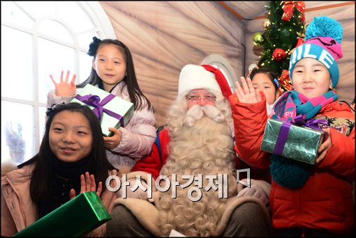[아시아경제 최우창 기자] 크리스마스 이브인 24일 서울 중구 신세계백화점 본점에서 핀란드 로바니에미 마을에서 온 원조 산타할아버지와 아이들이 기념사진 촬영을 하고 있다.최우창 기자 smicer@<ⓒ세계를 보는 창 경제를 보는 눈, 아시아경제(www.asiae.co.kr) 무단전재 배포금지>