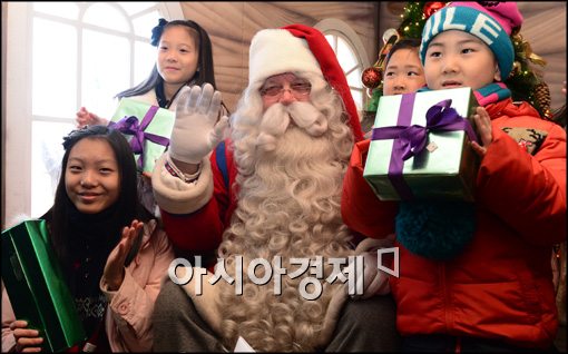 [아시아경제 최우창 기자] 크리스마스 이브인 24일 서울 중구 신세계백화점 본점에서 핀란드 로바니에미 마을에서 온 원조 산타할아버지와 아이들이 기념사진 촬영을 하고 있다.최우창 기자 smicer@<ⓒ세계를 보는 창 경제를 보는 눈, 아시아경제(www.asiae.co.kr) 무단전재 배포금지>