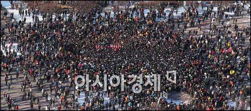 [아시아경제 장인서 기자] 대규모 미팅 이벤트 '솔로대첩'이 당초 우려와 달리 무사히 막을 내렸다. 영하 10도의 한파 속에서도 남녀 참가자들 1500여명이 광장에 운집했다. 구경꾼, 경찰인력까지 포함하면 3500여명에 달한다. 남성 비율이 절대적으로 많았다. 주최측은 남녀 비율을 7대 3정도로 추산했다. 행사시작 시간인 오후 3시가 되자 여의도공원 문화마당에는 젊은 남녀들이 삼삼오오 몰려들었다. 주최 측의 행사 진행에 대해서는 아쉽다는 평가가 이어졌다. 미숙한 인원통제 속에 미리 예고됐던 집단 알람, 댄스 퍼포먼스 등이 불발됐다. 행사 시작 1시간 전부터 커플 탄생을 기대하며 모였던 참가자들은 실망하는 표정이 역력했다. 먼 곳에서 왔거나 친구들끼리 온 경우, 허탈한 표정으로 귀가를 서두르는 이들도 있었다. 강북구에서 출발해 일찌감치 행사장에 도착했다는 김모(23)씨는 "이상형의 여성을 만날까 싶어 왔는데 말 걸기조차 어려웠다"고 털어놨다. 그는 "당장 내일로 다가온 크리스마스에 뭘 할지도 막막하다"며 걱정을 내비쳤다. 남초 현상이 짙어지자 "기자님은 참가 안하세요?"라고 묻는 30대 남성도 있었다.서울 양천구에서 온 이동규(24)씨는 "시시하고 재미없어 그냥 귀가한다"고 말했다. 주현군(29)씨와 친구들 역시 "진행자가 나서서 분위기를 잡아주지 않으니 어수선하고 흐지부지 되는 분위기"라며 "커플들을 위한 축제가 될 거라고 생각했으나 그냥 사람 구경했다 셈 치고 있다"고 입을 모았다.25살 동갑내기 친구 박현종, 이현진, 전정균, 이요셉씨는 "내심 귀여운 여성을 만나고 싶었는데 실망했다"고 못내 아쉬운 표정을 지었다. 박현종씨는 "최초 공지됐던 것과 달리 행사가 상당히 밋밋했다"면서 "말 그대로 산책이나 하다 갈 생각이다"고 말했다. 여성 참가자들 사이에서도 불평이 터져나왔다. 경기도 광주에서 온 3명의 여고생들은 일행 중 한 명이 데이트 신청을 받았지만 나머지 두명은 받지 못했다. 이중 한 여고생은 "훈남 스타일의 이상형을 만나고 싶었는데 다소 아쉽다"고 말했다.이들 외에도 독일과 캐나다에서 온 외국인 청년 두 명은 "온라인에서 관련 뉴스를 많이 접했다. 그냥 둘러보러 왔는데 무척이나 흥미롭다"고 이번 이벤트를 평했다. 일본 유학생인 한 여성(30)은 "연하남들도 많고 이벤트 자체는 신선한 시도였다"고 말했다.행사가 거의 끝나가던 오후 4시 10분경 멋진 회색코트를 차려입은 남성이 붉은 머플러를 한 여성과 데이트를 약속했다. 솔로대첩 1호 커플이 탄생한 것이다. 이들이 수줍은 표정으로 포즈를 취하자 취재진들의 플래쉬 세례가 쏟아졌다. 오후 4시30분을 기해 주최 측의 행사종료 공지가 있었음에도 남녀 모두 쉽게 자리를 떠나지 않았다. 곳곳에서 기타로 노래를 부르거나 어렵사리 탄생한 커플을 축하하는 환호성도 들렸다. 이날 행사장 입구에서 둥굴레차 나눠주기 봉사에 참여한 김지윤씨는 "젊은이들이 많이 모인다고 해서 응원 차 왔다"면서 "행사의 성공여부와 상관없이 이런 자리가 마련됐다는 게 즐거웠다"고 평했다.우려됐던 성추행이나 소매치기 등의 범죄는 발생하지 않았다. 행사가 끝날 무렵 경찰 측은 "이날 112신고 등을 통해 단 한건의 사고신고도 접수되지 않았다"며 "비교적 차분하게 진행된 편"이라고 밝혔다. 이날 경찰은 성추행이나 소매치기 등 우발적인 사고에 대비해 서울지방경찰청 100명을 비롯해 400여명의 경찰을 현장에 투입했다. 솔로대첩의 공동기획자 장찬욱 대표는 "정확한 숫자를 집계할 수 없을 정도로 많은 분들이 와주셨다"면서 "너무 얌전하게 진행했나 하는 아쉬움은 있지만 곳곳에서 무리를 지어 즐기는 분들도 있는 걸 보니 흡족하다"고 말했다. 장인서 기자 en1302@<ⓒ세계를 보는 창 경제를 보는 눈, 아시아경제(www.asiae.co.kr) 무단전재 배포금지>