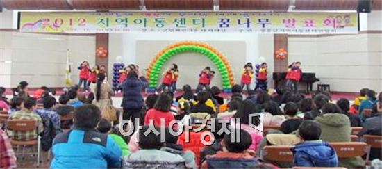 전남 장흥군(군수 이명흠)은 지역아동센터 장흥군연합회(회장 차점숙)와 함께 지난 22일 관내 11개소 지역아동센터 아동들의 꿈나무 발표대회를 성황리 개최했다.올해로 제3회째 개최하게 된 꿈나무 발표대회는 지역아동센터를 이용하고 있는 아동들이 한해 동안 배우고 익힌 작품전시 및 특별프로그램을 무대에서 발표함으로써 아동들의 자존감을 향상시키고 지역아동센터에 대한 지역 사회의 이해와 참여를 유도하고자 하는데 목적을 두고 있다. 이날 행사는 장흥종합사회복지관 지역아동센터의 난타공연을 시작으로 하와이 댄스, 영어 연극, 태보, 댄스공연, 중창, 무용 등 다양한 장르의 특별프로그램 공연과 더불어 리본공예, 풍선아트, 미술그림, 아이클레어 등 아동들이 손수 만든 작품도 함께 전시하여 다양한 볼거리를 제공했다. 장흥군 지역아동센터는 현재 11개소(장흥4, 관산1, 용산1, 안양1, 장동1, 장평1, 부산1, 회진1)가 운영되고 있으며 이용아동은 270여명에 이른다. 이번 발표를 계기로 지역아동센터가 단순 방과 후 공부방의 역할뿐 아니라 취미, 예체능, 놀이교실, 문화체험 등 다양한 프로그램을 실시하는 종합적인 서비스 공간으로써의 역할을 하고 있다는 것을 널리 알리는 계기가 되었다. 군 관계자는 “아이들이 밝고 건강하게 성장하여 행복 할 수 있도록 우리 모두의 관심과 격려가 필요하다"며 "특히 지역아동센터에 대한 지원을 늘려 저소득층 아동이 이용하는 지역아동센터가 다양하고 내실 있는 프로그램을 운영할 수 있도록 지원 하겠다”고 말했다.노해섭 기자 nogary@ <ⓒ세계를 보는 창 경제를 보는 눈, 아시아경제(www.asiae.co.kr) 무단전재 배포금지>