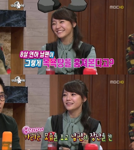 [아시아경제 이금준 기자] 뮤지컬 배우 김소현이 8살 연하 남편과의 깨알 같은 에피소드로 화제를 모았다.김소현은 26일 방송한 MBC '황금어장-라디오스타'에 출연해 8살 연하 남편 손준호와의 다정한 사진을 공개했다. 연대 성악학과 출신인 김소현의 남편은 182cm의 훤칠한 키와 준수한 외모로 눈길을 끌었다.특히 김소현은 8살 연하 남편이 욕실을 훔쳐본다는 이야기로 큰 관심을 모았다. 그는 "샤워를 하다가 이상한 느낌이 들어서 돌아보니 남편이 훔쳐보고 있었다"며 "결혼하고 제가 수줍어하니까 장난치려고 하는 것"이라는 말로 웃음을 안겼다.2010년 뮤지컬 '오페라의 유령'을 통해 만난 김소현과 손준호는 2011년 6월 웨딩마치를 울린바 있다.네티즌들은 김소현의 8살 연하 남편 에피소드에 "정말 두 사람이 다정한 것 같다", "미소가 자연스럽게 지어지는 커플이다", "정말 결혼하고 싶어진다" 등 다양한 반응을 보였다.한편 이날 '황금어장-라디오스타'는 김소현의 남편인 손준호를 '손진우'로 표기하는 실수를 저질렀다.이금준 기자 music@<ⓒ아시아경제 & 스투닷컴(stoo.com)이 만드는 온오프라인 연예뉴스>