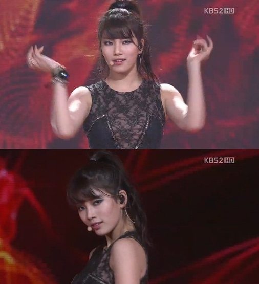 [아시아경제 조서희 기자]걸 그룹 미쓰에이의 수지가 과감한 시스루룩으로 착시 효과를 냈다.수지는 지난 28일 방송된 KBS 2TV '가요대축제'에서 '터치'(TOUCH)를 열창하며 섹시한 옷차림과 퍼포먼스로 남성 팬들의 마음을 흔들었다.특히 수지는 가슴 라인이 비치는 듯한 의상에 초미니 스커트로 각선미를 강조해 눈길을 끌었다.또한 진한 립스틱과 시크한 메이크업, 도도한 표정연기로 네티즌들의 관심을 끌었다.한편 수지가 참여한 '가요대축제'는 올해 가장 활발한 활동을 펼친 가수 20여 팀이 출연해 화려한 볼거리를 제공했다.조서희 기자 aileen23@<ⓒ아시아경제 & 스투닷컴(stoo.com)이 만드는 온오프라인 연예뉴스>