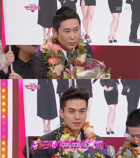 [아시아경제 이금준 기자] 신동엽과 이동욱이 '베스트 커플'에 등극했다.신동엽과 이동욱은 30일 오후 서울 상암동 SBS프리즘타워에서 진행된 '2012 SBS 연예대상'에 참석해 베스트 커플상을 수상하는 영광을 안았다. 두 사람은 '강심장'의 MC로 호흡을 맞추며 시청자들의 사랑을 받았다.수상 후 이동욱은 "상상도 못했던 일이 벌어졌다. 모두 신동엽 덕분인 것 같다"고 말했다.이어 신동엽은 "강호동과 이승기가 정말 많은 사랑을 받았다. 우리에게도 사랑을 보내주신 시청자여러분께 감사드린다. 아이들과 보기 불편한 멘트에도 채널을 돌리지 않으신 부모님과 꿋꿋이 봐 주신 청소년들에게도 감사드린다"고 밝혔다.'2012 SBS 연예대상'은 올 한 해 동안 시청자들에게 가장 많은 사랑을 받은 예능 프로그램과 출연진을 가리는 축제로 올 해 윤도현과 하하, 그리고 소녀시대 멤버 수영이 시상식의 MC를 맡았다.본격적인 시상식의 시작을 알리는 레드카펫 행사에는 그간 시청자들에게 웃음을 안겼던 수많은 스타들이 밝은 표정으로 참석했다. 이들은 현장에 모인 취재진들의 플래시 세례를 받았다.한편, '2012 SBS 연예대상'은 8시 45분부터 생방송으로 시청자들 곁을 찾았다.이금준 기자 music@<ⓒ아시아경제 & 스투닷컴(stoo.com)이 만드는 온오프라인 연예뉴스>