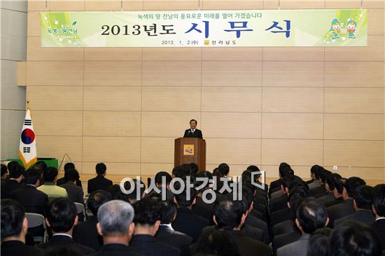 전라남도는 2일 오전 도청 왕인실에서 박준영 도지사와 실국장, 직원 등 300여명이 참석한 가운데 2013년 시무식을 가졌다. 사진제공=전남도노해섭 기자 nogary@<ⓒ세계를 보는 창 경제를 보는 눈, 아시아경제(www.asiae.co.kr) 무단전재 배포금지>