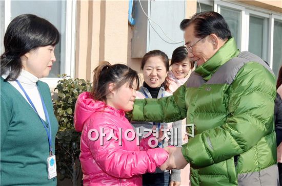 박준영 전남도지사가 2일 계사년(癸巳年) 새해를 맞아 현장중심의 시무식을 위해 목포시 고하도 지적장애시설인 공생재활원을 방문, 공생재활원 관계자와 시설이용자를 격려 하고 있다. 박 지사는 시무식에서 전남이 희망을 갖고 미래를 꿈꾸며 훈훈한 공동체를 일구는데 모든 노력을 기울여나가자고 밝혔다. 사진제공=전남도노해섭 기자 nogary@<ⓒ세계를 보는 창 경제를 보는 눈, 아시아경제(www.asiae.co.kr) 무단전재 배포금지>