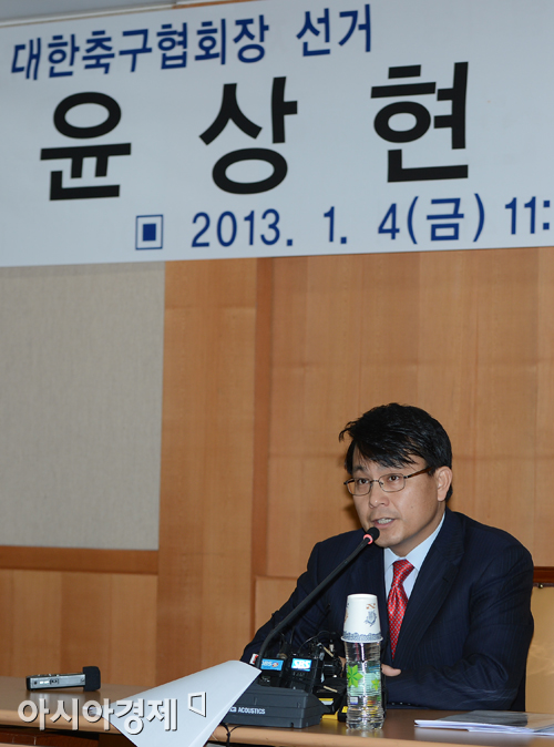 [아시아경제 전성호 기자]"정치인으로서 대중적 인지도 높이기 위한 출마가 아니다. 축구인이 되고픈 꿈을 위해 전문성과 열정을 갖고 개혁의 청사진을 들고 나왔다." 윤상현 의원(새누리당·인천 남구 을)이 한국 축구 대권 도전을 공식 선언했다. 윤 의원은 4일 오전 서울 신문로 축구회관 5층 대회의실에서 기자회견을 갖고 52대 대한축구협회 회장 선거에 출마할 뜻을 밝혔다.그는 이날 기자회견에서 "대혁신·대화합으로 100%의 축구협회로 대한민국 축구를 사랑하는 모든 분들께 축구를 돌려드리기 위해 나왔다"라며 출마 배경을 전했다. 이어 "양대 재벌가로 나뉘어 축구판을 정치판으로 만들어온 폐해를 근절시키겠다"라며 "개혁과 화합의 전도사로 한국 축구 역사를 새롭게 쓰고 싶다"라며 출사표를 던졌다. 가장 돋보인 부분은 협회에 대한 개혁의지였다. 윤 의원은 "그동안 협회는 조광래 감독 경질, 직원 횡령 사건 과정 등을 통해 그 폐쇄성이 잘 드러났다"라고 지적했다. 그는 "1000억 원의 예산을 쓰는 비영리 공적단체로서 이해할 수 없는 일이며, 이는 폐쇄적이고 비민주적인 지배구조 때문이다"라고 목소리를 높였다. 더불어 "내과적 치료로는 안되며, 외과적 수술을 해야 한다"라고 덧붙였다.군팀 추가 창설이란 이색 공약도 내놓았다. 상무·경찰청 축구단 외에 해군·해병대·공군 등 추가로 3개 군팀을 창설하겠다는 내용이었다.이에 대해 윤 의원은 "축구인 스스로의 자존심을 찾기 위한 작업"이라고 설명했다. 그는 "군 입대를 피하려고 자해 행위까지 할 정도"라고 참담함을 드러낸 뒤 "이전에도 공군 등의 팀이 있다 상무로 통합된 것이고, 국방부 예산도 얼마 들지 않는 일"이라며 실현 가능성을 제시했다.