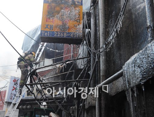 [아시아경제 백소아 기자] 9일 서울 중구 충무로 인쇄골목의 한 인쇄소에서 화재가 발생하여 소방대원들이 화재진압에 나서고 있다.백소아 기자 sharp2046@<ⓒ세계를 보는 창 경제를 보는 눈, 아시아경제(www.asiae.co.kr) 무단전재 배포금지>