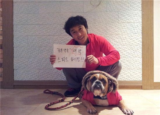 [아시아경제 최준용 기자]인기 개그맨 김병만이 스피드의 '슬픈약속' 뮤직비디오를 감상평을 남겼다.사진 속 김병만은 "슬픈약속 대박 스피드 화이팅" 이라는 글을 들고 포즈를 취했다. 특히 그는 MBC 시트콤 '엄마가 뭐길래'에 함께 출연했던 불독 강아지 레오와 함께 해 눈길을 사로잡았다. 트위터에는 "오랜만에 본 너무 슬픈 뮤직비디오 대박나길"이라고 글을 남겼다. 스피드 멤버들은 연습 쉬는시간에 우연히 기사를 검색하다가 선배 김병만의 트위터를 보고 아직 한번도 뵌 적이 없지만 이렇게 응원을 해주셔서 정말 감사하다며 꼭 찾아 뵙고 감사 인사를 전하고 싶다고 전했다. 스피드의 '슬픈약속' 뮤직비디오는 5.18 광주 민주화 항쟁 내용을 다뤘으며 3일내내 각 포털 사이트 실시간 검색어에 오르며 개념 뮤비로 화제를 모았다. 한편 스피드의 뮤직비디오 2부는 오는 15일 공개된다.최준용 기자 cjy@<ⓒ아시아경제 & 스투닷컴(stoo.com)이 만드는 온오프라인 연예뉴스>