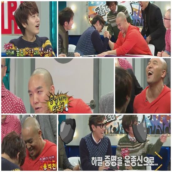 [아시아경제 최준용 기자]숀리가 물근육 의혹에 대해 즉석대결을 펼치며 해명했다.숀리는 9일 방송된 MBC 예능프로그램 ‘황금어장-라디오스타’에서 MC 윤종신과 규현을 상대로 자신의 힘을 입증했다.앞서 숀리는 MBC ‘승부의 신’팀과 함께한 줄다리기 대결에서 패배하며 굴욕을 맛본 바 있다. 특히 이 자리에서 탁재훈은 숀리에게 ”숀리가 아침마다 몸에 바람을 넣어 근육을 만드는 걸 봤다“고 물근육 의혹을 제기했다.이에 대해 숀리는 “단지 힘을 쓰는 법을 몰랐던 것 같다”고 해명하며 윤종신과 팔씨름 대결을 펼쳤다. 예상대로 숀리가 윤종신을 꺾었다. 이어진 규현과의 발씨름 대결에서도 숀리는 승리를 차지했다. 그는 “여기 잘나온 것 같다. 물근육 의혹을 해명해서 다행이다”라고 말했다.하지만 MC 및 게스트들은 숀리에게 “윤종신을 꺾고 힘을 증명하냐”며 조소했다.최준용 기자 cjy@<ⓒ아시아경제 & 스투닷컴(stoo.com)이 만드는 온오프라인 연예뉴스>