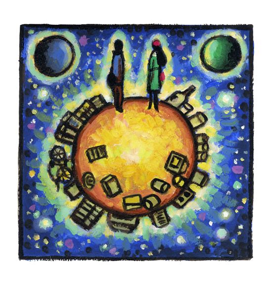 “이런 덴 자주 오시는가보죠?”나란히 걸어가며 윤여사가 먼저 말을 걸어왔다.“아뇨. 지금까지 합해서 모두 세 번이나 될까.”“난 첨인데……. 사실 난 이런 낡아빠진 고물딱지들 좋아하지 않거든요.”그리고나서 하림의 귀에다 대고 작게 속삭이듯이 말했다.“실은 우리 집이 어릴 때 아버지가 고물장사를 했거든요. 호호호.”“아? 예에.”하림은 한 대 얻어맞은 표정으로 고개를 끄덕거렸다. “산더미 같이 쌓인 고물들 틈에서 술래잡기 놀이를 하곤 했는데……. 여기 보세요.”그녀는 걸음을 멈추고 코트를 들추더니 이어 치마까지 들추고 허연 정강이께를 보여주었다. 거기엔 길죽하고 허연 흉터 자국이 나있었다. 지나가는 사람들이 뭘 하나 하고 쳐다보았다.“고물들이 쏟아져 내려오면서 여기를 딱 끼었지 뭐예요. 죽는 줄 알았다니까요.”하림은 약간 어이없다는 표정으로 웃었다.만난 지 채 오 분도 되지 않았는데, 윤여사는 마치 오래 사귄 사람 대하듯 잘도 떠들어대었다. 그래도 왠지 나쁘지는 않았다. 아니, 요즘처럼 우중충한 시절에 이렇게 마음대로 떠들어대는 철없는 늙은 여자를 만난 것만 해도 행운일지도 모른다는 생각이 들었다. 혜경은 너무 어두웠고, 그래서 보기만 해도 너무 힘이 들었다. 윤여사는 거기완 아주 딴판이었다. 혜경이 안개꽃 종류라면 윤여사는 한여름의 햇살 아래 붉게 핀 강한 장미과 종류랄까. 하여간 세상엔 여러 종류의 사람들이 살고 있는 것은 분명했다.어떤 영화에서던가? 사람들은 서로 소통이 되지 않으면 묻곤 했다.“당신은 어느 별에서 온 사람이오?”“나는 혹성 KC335에서 왔소. 당신은....?”“난 안드로메다 은하 혹성 BDF 45에서 왔소.”그런 식이었다. 아마도 지금 이 비좁은 대한민국이란 땅에도 다른 별에서 온 사람들이 마구 뒤섞인 채 살고 있는 지도 모른다. 그래서 서로가 너무나 답답해하고, 갑갑해하고 있는 지도 모른다. 그래도 어느 별에서 왔건, 나쁜 놈은 나쁜 놈이고, 좋은 놈이다. 어떤 놈들은 지배를 하고 어떤 놈들은 혼자 모든 것을 다 가지려고 한다. 이 작고 작은 별의 이 작고 작은 땅에서…….그런 놈들은 분명히 아주 사악한 별에서 떨어진 놈들이 틀림없을 것이다.하림이 그런 쓸데없는 생각을 하는 동안 ‘세똥철’이 먼저 도착하여 손으로 빨리 오라는 시늉을 보내고 있었다. ‘제주도 흑돼지 숯불 갈비집’은 시장 안쪽에 있었다.그리 넓지 않은 허름한 홀 안으로 들어가자 먼저 왁자지껄한 소리와 함께 고기 굽는 냄새가 연기와 뒤섞여 탁하게 코를 막고 섰다. 겨우 비집고 들어가 둥근 불판 하나를 차지하고 동철이 먼저 앉고, 그 옆으로 하림과 윤여사가 앉았다. 윤여사가 코트를 벗자 동철이 얼른 받아서 냄새가 배이지 않게 마련된 상자에 담아서 한쪽에 얌전하게 갖다 모셔두었다. 하는 품이 평소에도 많이 해 본 솜씨 같았다.“아줌마 여기 일단 먼저 갈비 삼인분하고, 소주 한 병 줘봐요!”동철이 물어보지도 않게 호기롭게 시켰다. 하긴 물어보고 할 것도 없었다. 그것 아니면 그거였다.글 김영현/그림 박건웅<ⓒ세계를 보는 창 경제를 보는 눈, 아시아경제(www.asiae.co.kr) 무단전재 배포금지>