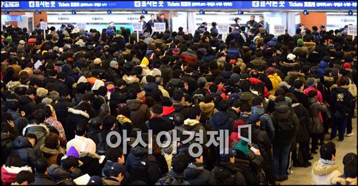 [아시아경제 최우창 기자]2013 설 연휴 기차표 예매가 시작된 15일 시민들이 기차표 예매를 위해 서울역 창구에 줄지어 기다리고 있다. 최우창 기자 smicer@<ⓒ세계를 보는 창 경제를 보는 눈, 아시아경제(www.asiae.co.kr) 무단전재 배포금지>