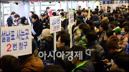 [아시아경제 최우창 기자]2013 설 연휴 기차표 예매가 시작된 15일 시민들이 기차표 예매를 위해 서울역 창구에 줄지어 기다리고 있다. 최우창 기자 smicer@<ⓒ세계를 보는 창 경제를 보는 눈, 아시아경제(www.asiae.co.kr) 무단전재 배포금지>