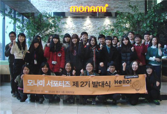 [아시아경제 이정민 기자]사무용품 전문기업 모나미(대표 송하경)는 지난 11일 본사에서 ‘모나미 서포터즈 2기’ 발대식을 갖고 공식적인 활동을 시작했다고 15일 밝혔다.선정된 모나미 서포터즈 54명은 제품을 직접 체험하고 아이디어를 제안하는 역할을 한다. 사측은 이를 반영해 상품개발에 나서고 고객 만족도를 높일 예정이다.이제일 마케팅팀장은 "모나미 2기 서포터즈 모집에 기대 이상으로 많은 신청자가 참여했다. 모나미의 관심과 기대에 깊은 감사의 마음을 전한다”며 “모나미 카페가 젊은 감각으로 무장한 특별한 커뮤니티 채널로 자리매김할 수 있도록 최선을 다할 것”이라고 전했다.이정민 기자 ljm1011@<ⓒ세계를 보는 창 경제를 보는 눈, 아시아경제(www.asiae.co.kr) 무단전재 배포금지>