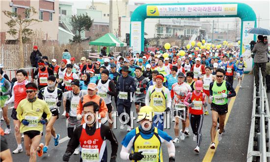 산과 들, 바다와 호수가 조화롭게 어우러진 무공해 청정지역 장흥에서 전국 마라톤대회를 개최한다.이번 마라톤대회는 장흥군(군수 이명흠)과 한국수자원공사 전남서남권관리단(단장고영환)이 공동 주최하고 장흥군 육상연합회가 주관 오는 2월 3일 장흥읍 탐진강변 체육공원에서 열린다. 이번 대회는 오전 9시 20분에 개회식과 스트레칭 체조 후 10시부터 풀코스, 하프코스, 단축코스(10㎞), 건강코스(5㎞)순으로 출발이 진행된다. 종목별 대회 코스는 풀코스(42.195㎞)가 탐진강변 출발점에서 부산면 교차로를 경유 유치면 소재지를 지나 관동마을에서 반환하는 코스이고, 하프코스(21.097㎞)는 탐진강변 출발점에서 부산면 교차로를 지나 지천터널을 지나 반환한다.단축코스(10㎞)는 탐진강변 출발점에서 부산교를 지나 부산면 교차로에서 반환하고, 건강코스(5㎞)는 탐진강변 출발점에서 부산교 앞을 경유 장흥실고 정문까지의 제방길을 지나 출발지점으로 돌아오는 코스이다.