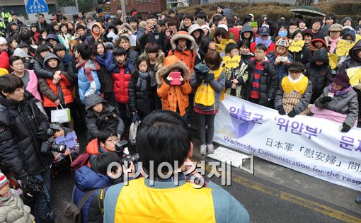 [아시아경제 백소아 기자] 16일 서울 종로구 일본대사관 앞에서 열린 제1057차 일본군 위안부 문제 해결을 위한 정기수요시위에 추운 날씨에도 많은 사람들이 참석했다.백소아 기자 sharp2046@<ⓒ세계를 보는 창 경제를 보는 눈, 아시아경제(www.asiae.co.kr) 무단전재 배포금지>