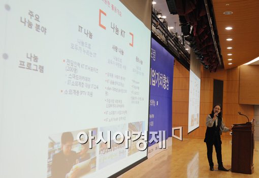 [아시아경제 백소아 기자] 18일 서울 중구 외환은행 본점에서 열린 '오픈 포럼 문화예술과 기업가치향상'에 참석한 이덕순 KT상무가 대상자 변화를 이끌어내는 문화예술 사회공헌 사례발표를 하고 있다.백소아 기자 sharp2046@<ⓒ세계를 보는 창 경제를 보는 눈, 아시아경제(www.asiae.co.kr) 무단전재 배포금지>