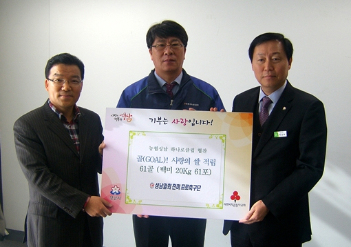 [아시아경제 김흥순 기자]프로축구 성남일화가 18일 성남시청 사회복지과에서 농협하나로클럽과 함께하는 '사랑의 골 릴레이 쌀 나누米' 전달식을 진행했다.이번 행사는 성남과 농협중앙회, 성남유통센터가 연계된 나눔사회공헌 활동으로 지난 시즌 성남 선수단이 기록한 1골당 쌀 1포대를 적립, 지역에 기부하는 프로그램이다. 적립된 분량은 백미 20kg 총 61포대로 지역 내 도움이 필요한 이웃들에게 전달될 예정이다. 정철수 성남 사무국장은 "작년부터 시작한 지역사회 나눔활동이 조금씩 결실을 맺어가는 과정이라고 생각한다"며 "올해도 다양한 행사를 통해 경기장 안팎에서도 항상 노력하는 구단이 되겠다"라고 약속했다. [사진=성남일화천마축구단 제공]김흥순 기자 sport@<ⓒ세계를 보는 창 경제를 보는 눈, 아시아경제(www.asiae.co.kr) 무단전재 배포금지>