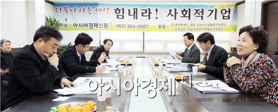 정부의 사회적 기업 육성정책이 시작된 지 6년이 지났다. 광주·전남지역의 사회적 기업도 꾸준히 늘어 고용노동부 인증 및 예비 사회적 기업만 200개가 넘는다. 빗대자면 사회적 기업은 새싹에서 묘목으로까지 성장하고 있는 셈이다. 하지만 사회적 기업이 취약계층에게 사회서비스와 일자리 제공 등 사회적 목적을 충실히 추구하고 있는지에 대해서는 의문이다. 이에 광주전남아시아경제신문은 17일 본사 회의실에서 사회적 기업 전문가들과 좌담회를 열고, 사회적 기업을 지속 가능하게 하고 원래 목적인 사회적 가치와 성과를 높일 수 있는 방안에 대해 의견을 들었다.□참석자= 김동형 광주광역시 일자리창출과 사무관, 박상하 광주사회적기업통합지원센터장, 신주환 전남사회적기업통합지원센터장, 정향자 광주권역사회적기업협의회장, 김범석 전남권역사회적기업협의회장□사회= 이승범 광주·전남 아시아경제신문 사장-사회= 2007년 사회적기업육성법이 시행된 이후 많은 사람들에게 사회적 기업이 피상적으로나마 알려졌다. 사회적 기업이 무엇이고 어떻게 발전해 왔는지 점검을 해 볼 필요가 있다고 본다.신주환 전남사회적기업통합지원센터장