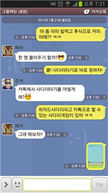 채팅과 동시에 사다리타기·궁합·사진꾸미기 등 앱 실행