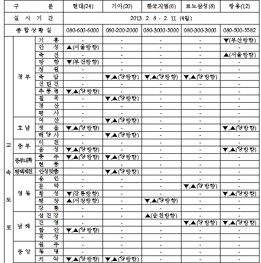 [아시아경제 임철영 기자]한국자동차산업협회가 국내 자동차업계는 설 연휴를 맞이해 귀향하는 소비자들의 편의 도모를 위하여 2월 8일부터 2월 11일까지 4일 동안 고속도로 및 국도 등 전국 일원에서 오전 9시부터 오후 5시까지 서비스코너를 설치·운영하는 '2013년도 설 연휴 자동차 특별 무상점검 서비스 행사'를 실시한다고 1일 밝혔다. 서비스 내용은 엔진·브레이크·타이어 점검, 냉각수·각종 오일류 보충 및 와이퍼블레이드·전구류 등이며 점검 후 필요시 소모성부품은 무상으로 교환도 해준다. 또한 인근지역 고장차량에 대한 긴급출동 서비스도 병행 실시할 예정이다.회사별로는 현대차가 가장 많은 전국 24곳의 서비스센터를 운용한다. 기아차는 20곳 , 한국GM 6곳, 르노삼성 8곳, 쌍용차 12곳에서 서비스를 실시한다. 이밖에 장거리 운행을 위한 차량관리 및 안전운전 요령을 안내하고, 전국 어디서나 가까운 정비소에서 서비스를 받을 수 있도록 종합상황실을 운영, 설 명절 귀향하는 고객들에게 최대한의 편의를 제공할 예정이다.임철영 기자 cylim@<ⓒ세계를 보는 창 경제를 보는 눈, 아시아경제(www.asiae.co.kr) 무단전재 배포금지>