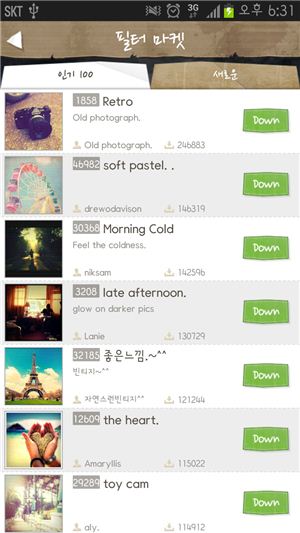[아시아경제 채명석 기자] 키위플(대표 신의현)은 ‘필터카메라 포 카카오’ 앱이 출시 하루 만에 앱스토어 사진 카테고리 1위에 올랐다고 5일 밝혔다. 구글플레이 마켓에서는 2위에 올랐다.위치기반 소셜네트워크서비스(SNS) ‘오브제’, 소셜카메라 ‘매직아워’ 개발사인 키위플은 필터카메라 포 카카오를 지난달 말 국내 사용자들에게 신규로 오픈한 채팅플러스 플랫폼에 탑재했다고 설명했다. 매직아워 포 카카오는 지난해 12월 일본 카카오톡에서 오픈한 채팅플러스에 탑재됐다.키위플은 “필터카메라 포 카카오는 사용자가 자신의 사진을 손쉽게 작품 사진으로 만들 수 있도록 도와준다”며 “이를 카카오톡 채팅창이나 카카오 스토리를 통해 친구들과 공유할 수 있도록 도와주는 사진 필터 앱”이라고 전했다.신의현 키위플 대표는 “2011년 5월에 출시한 매직아워는 이미 전 세계 200만 이상의 사용자들이 사용하고 있다”며 “8만개 이상의 필터가 추가로 등록됐으며 2000만개 이상의 필터가 다운로드 됐다”고 말했다.신 대표는 “필터카메라 포 카카오는 필터를 적용해 저장한 사진 작품을 카카오톡 소셜 응용프로그램인터페이스(API)를 통해 공유하는 트렌드를 창출할 것”이라고 강조했다.필터카메라 포 카카오는 아이폰, 안드로이드를 모두 지원한다. 카카오톡 채팅방에서 ‘>’ 버튼이나 화면을 옆으로 밀면 나타나는 채팅플러스에서 무료로 내려받을 수 있다.채명석 기자 oricms@<ⓒ세계를 보는 창 경제를 보는 눈, 아시아경제(www.asiae.co.kr) 무단전재 배포금지>